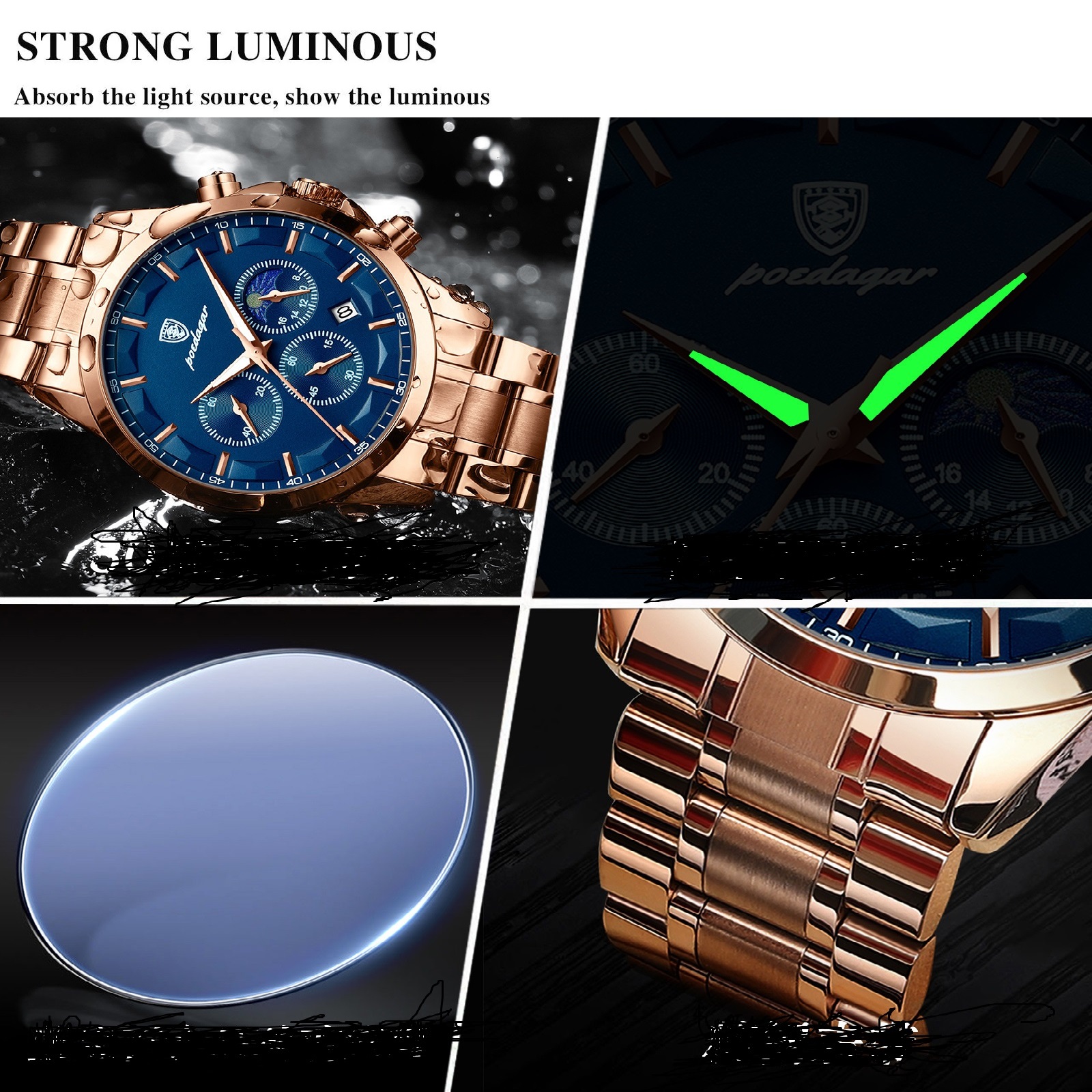 "The quality is far better than I expected for this price. The chain strap is solid and premium, the glass is crystal clear, and the weight of the watch feels luxurious. Got 3 compliments on my first day wearing it."